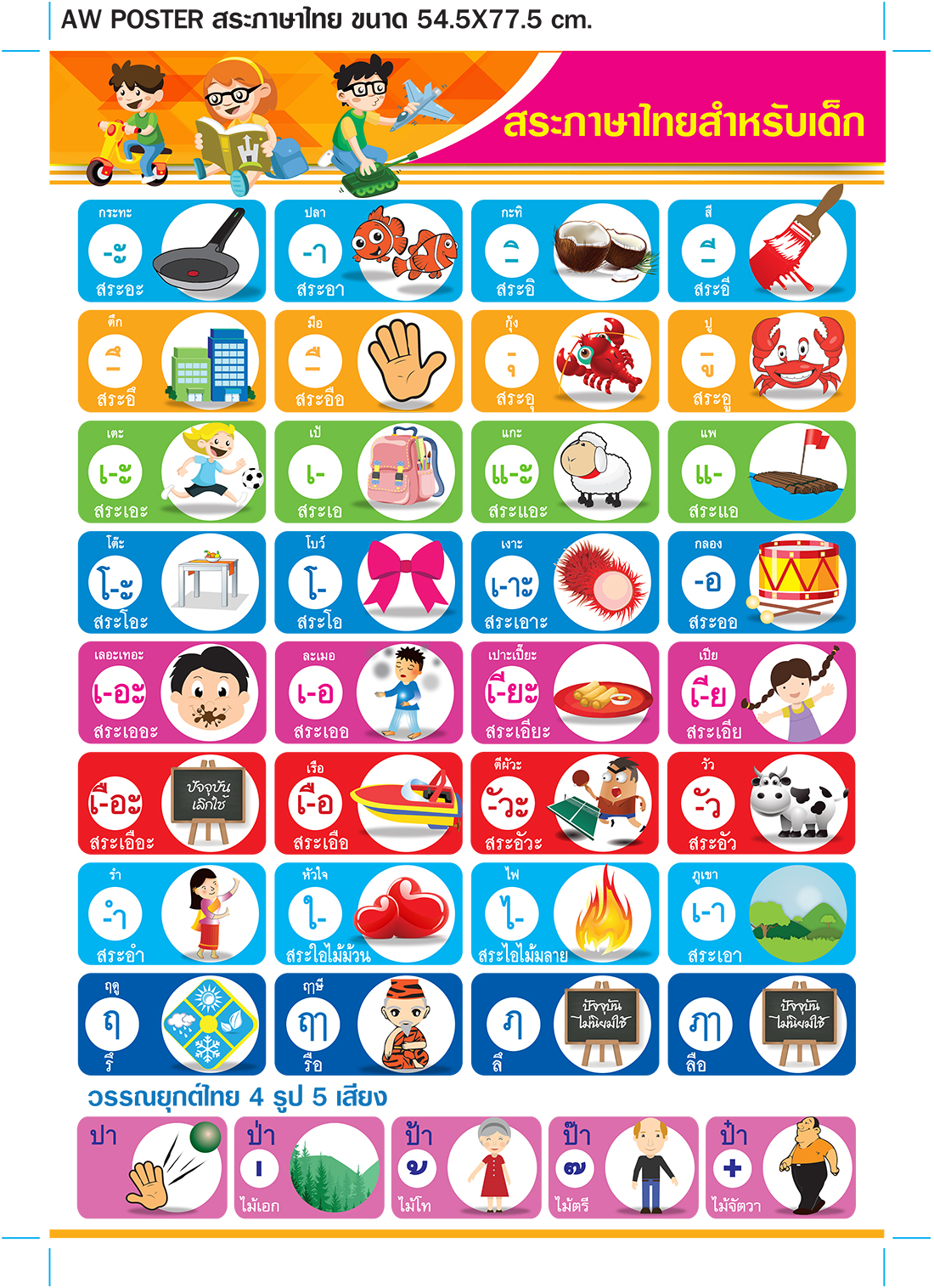 รายละเอียดสินค้า แผ่นพลาสติก สื่อการเรียนการสอน ภาพโปสเตอร์ สระ ภาษาไทย